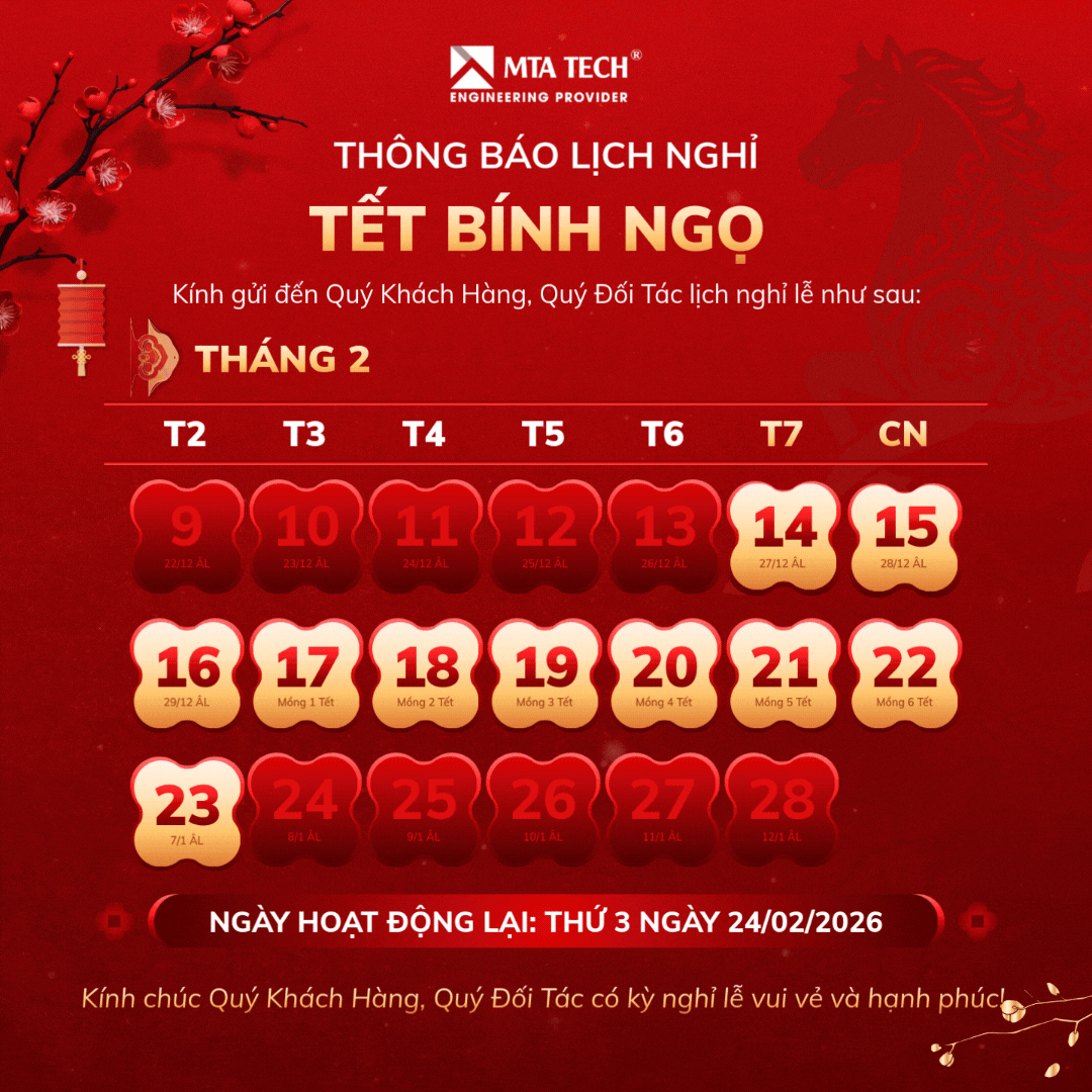 Nhân dịp Tết Nguyên Đán Bính Ngọ 2026, MTA TECH xin trân trọng thông báo đến Quý Khách Hàng và Quý Đối Tác lịch nghỉ lễ của công ty nhằm thuận tiện cho việc liên hệ, sắp xếp kế hoạch làm việc và triển khai các dự án.